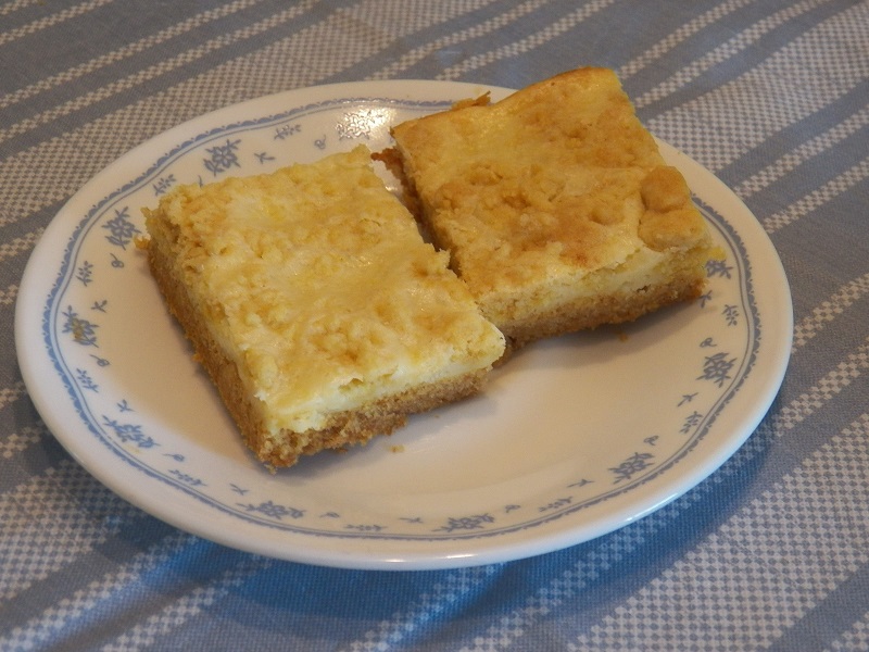Mix cake mix, 1 egg, and oil until crumbly. Reserve 1 cup. Pat remaining mixture into an ungreased 9 x 13 inch pan. Bake 15 minutes at 350 degrees. Beat cream cheese, sugar, lemon juice, and 1 egg until light and smooth. Spread over baked layer. Sprinkle with reserved crumbs. Bake 15 minutes longer. Cool and cut into bars.