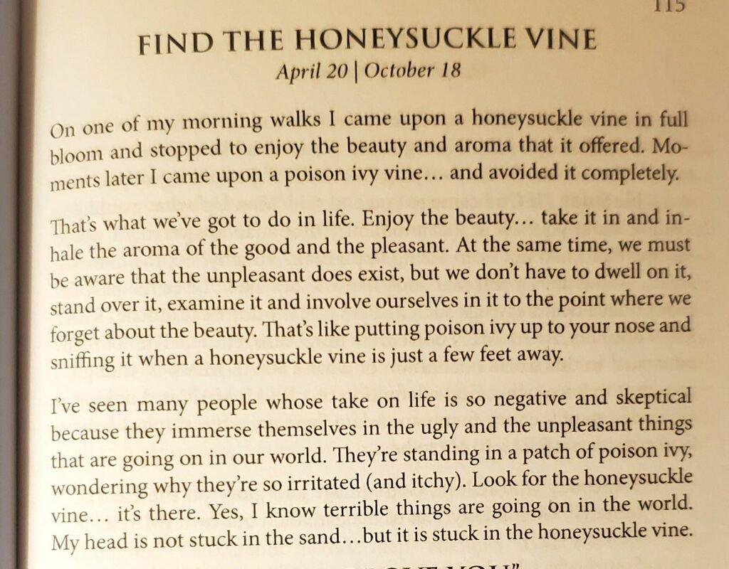 If you should by chance look for me today, you will find me standing near the Honeysuckle vine, inhaling it’s awesome fragrance!
