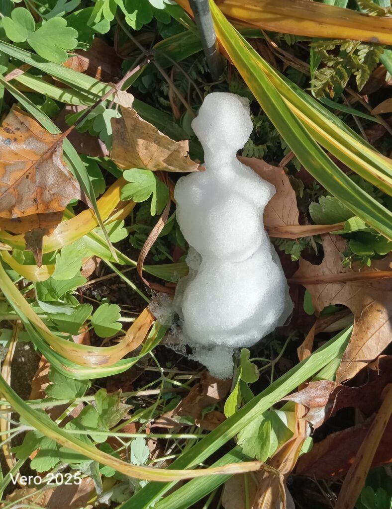 Well, we both got a pretty good covering, but I decided to do the snowman anyway.I got it partially done and got distracted and didn’t finish it.
