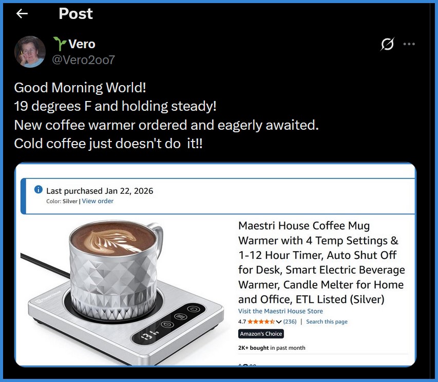 My coffee warmer croaked so I had to order a new one.